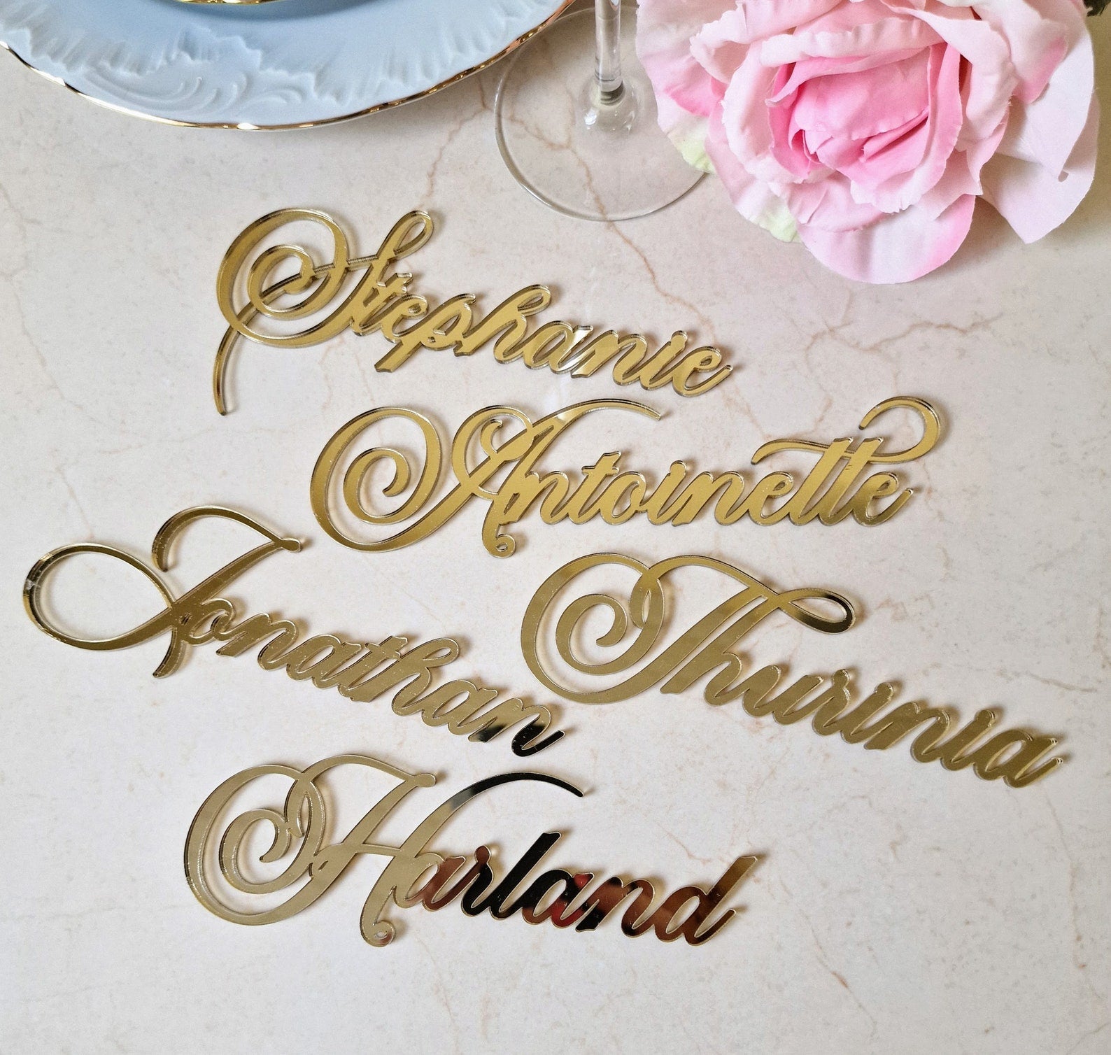 Trasforma ogni tavola in uno spettacolo di stile con i nostri segnaposto in plexiglass! Disponibili in trasparente, bianco elegante e oro sofisticato, questi nomi catturano la luce con finiture lucide o satinate che si adattano a qualsiasi occasione. Perfetti per matrimoni, cene speciali o eventi aziendali, aggiungono quel tocco di classe che fa la differenza. Leggeri, resistenti e facili da personalizzare, sono il dettaglio che gli ospiti non dimenticheranno. Scopri come un semplice nome può diventare una dichiarazione di eleganza!