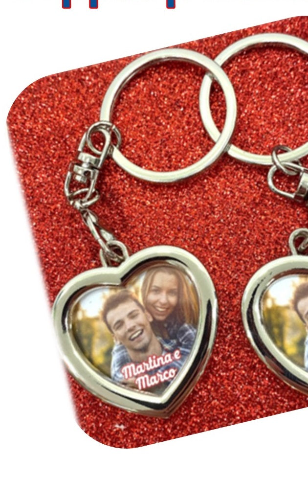Conserva i tuoi ricordi più preziosi con stile con il PORTACHIAVE PORTAFOTO in METALLO. Personalizzato con la tua foto preferita in diverse forme come cuore, fiore, quadrato, rettangolare, rotondo e ovale. Mostra il tuo amore e la tua creatività! Possibilità di scegliere colore retro. Confezione ordinabile a parte