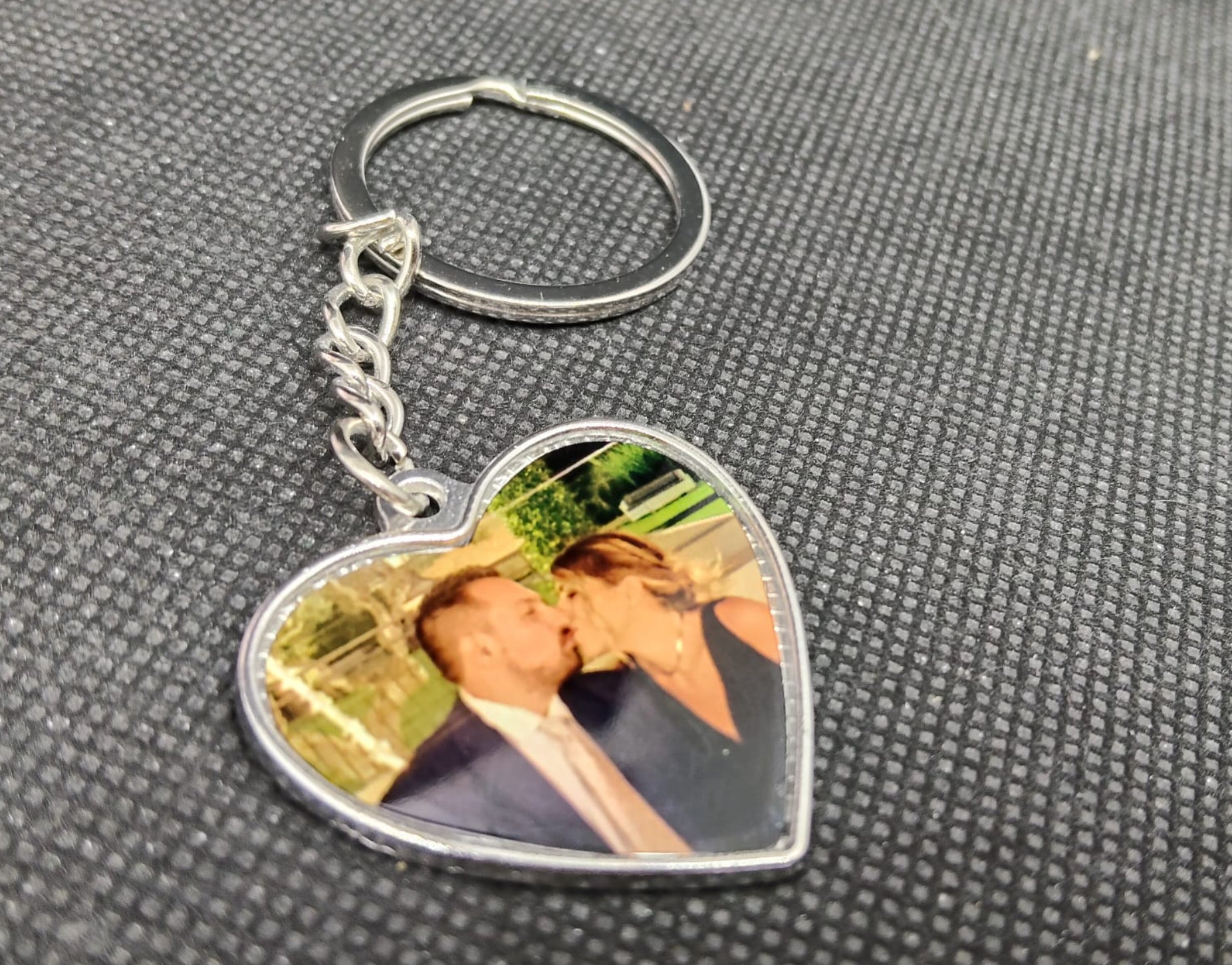 Regala un tocco di dolcezza ai tuoi cari con questo adorabile portachiavi a forma di cuore! Realizzato in metallo resistente, permette di personalizzare con una foto stampata direttamente sulla superficie, creando un ricordo unico e indimenticabile. Perfetto per fidanzati, amiche e mariti, trasforma un accessorio quotidiano in un gesto d'amore. Compatto e pratico, accompagna le chiavi con stile e sentimento. Un'idea regalo che farà sorridere chi la riceve!