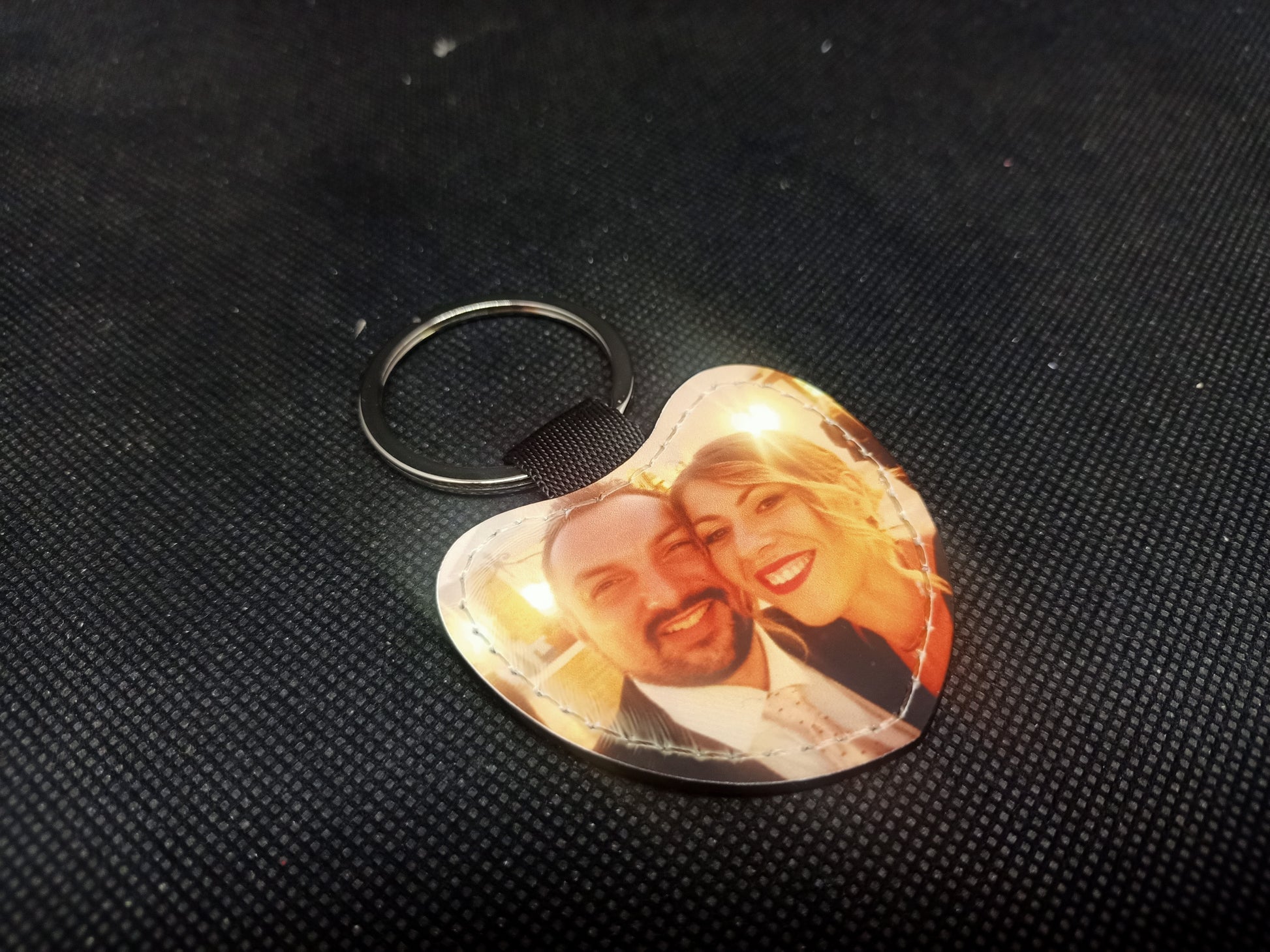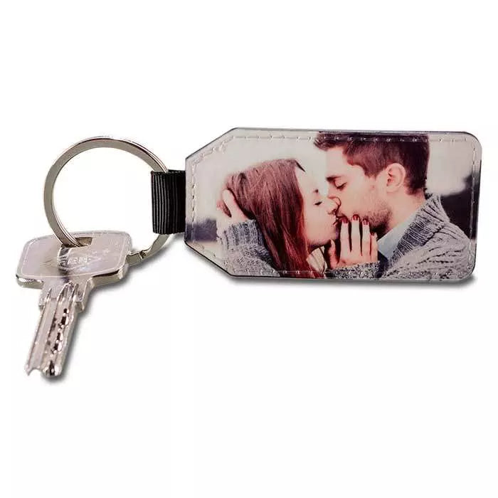 Portachiavi ecopelle a forma di cuore, rettangolo, cerchio o T-Shirt personalizzato con 2 foto